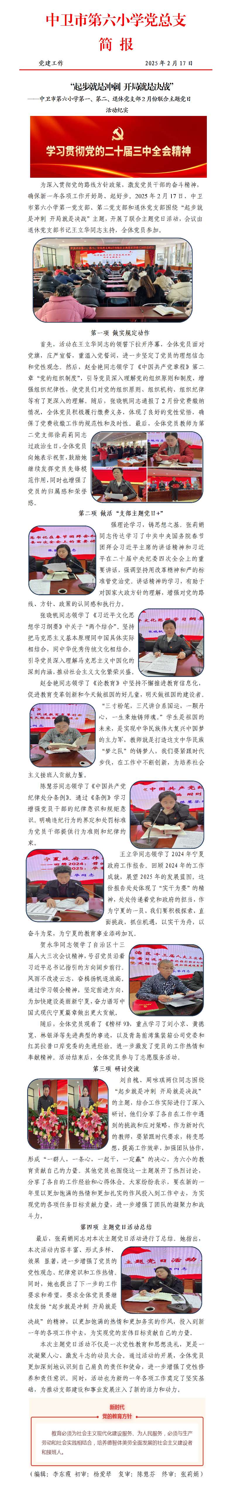 ——中卫市第六小学第一、第二、退休党支部2月份联合主题党日 活动纪