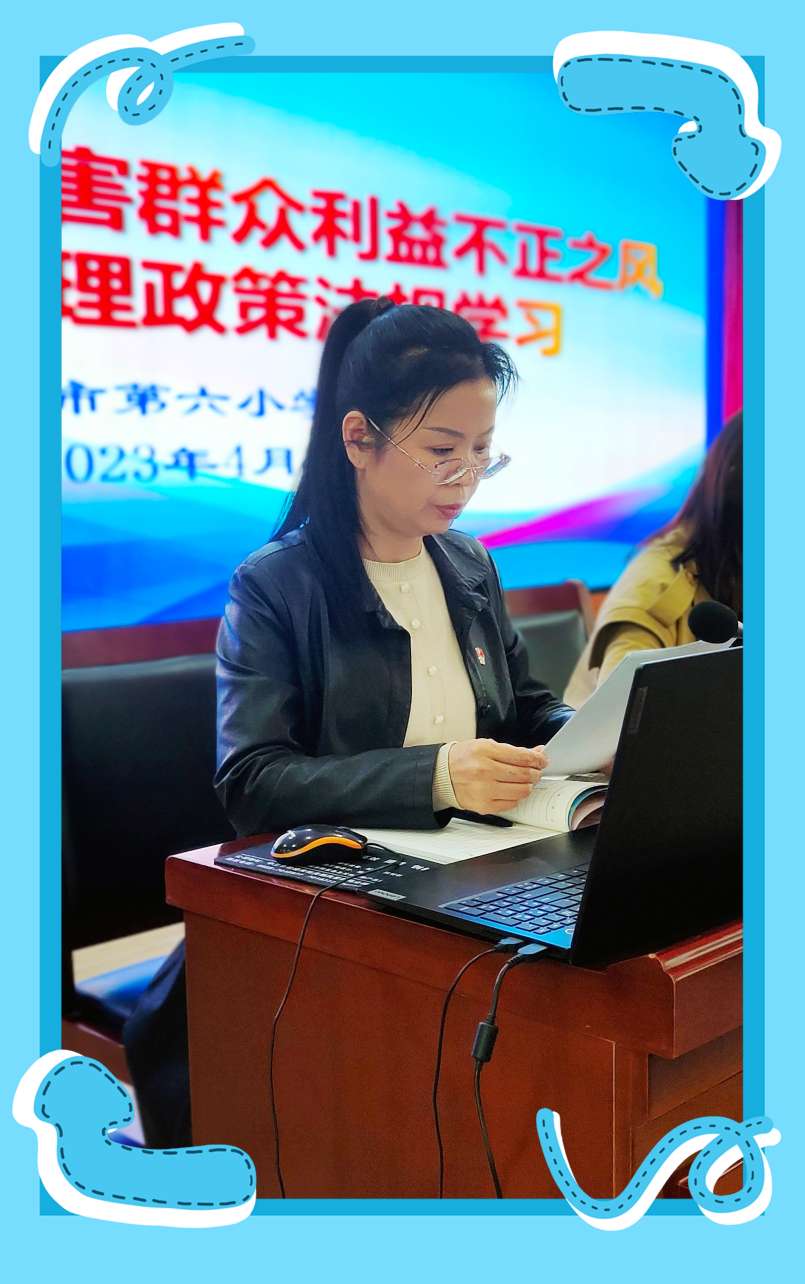 为深入贯彻落实自治区纪委监委和自治区教育工委、教育厅及市纪委监委关于教育领域侵害群众利益不正之风专项治理工作会议精神,持续净化教书育人环境,构建良好教育生态,根据中卫市教育工委关于印发《中卫市教育系统开展侵害群众利益不正之风专项治理工作实施方案》(卫教工委〔2023〕9号)的通知精神,中卫市第六小学党支部于4月24日下午,在四楼会议室继续召开了“中卫市第六小学党支部侵害群众利益不正之风专项治理政策法规学习” 会议,本次会议由张晓帆同志主持,全体教师参加。