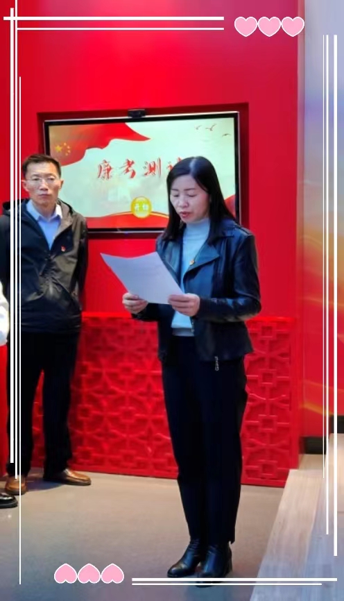 在支部书记张莉娟同志的带领下,全体党员面对鲜红的党旗,高举右拳,重温入党誓词。重温入党誓词,就是要时刻谨记自己在党旗下的铮铮誓言,认真思考“当初入党为什么、现在为党应该干什么、今后给党留什么”,进一步增强责任意识、担当意识、使命意识,充分发挥党组织的战斗堡垒作用和党员的先锋模范作用,做一名称职的、合格的共产党员。