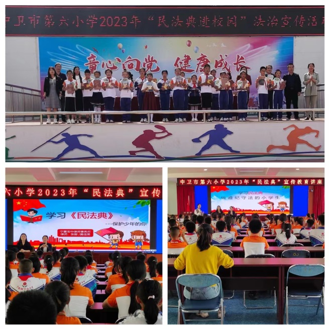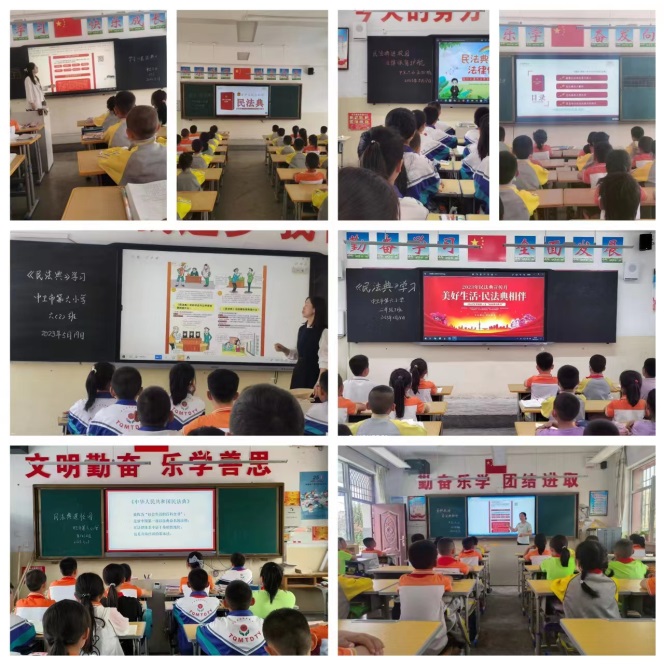 2023年5月17日组织部分五年级学生在四楼会议室集中听取了《民法典》宣传教育讲座。组织上道德与法治的老师专门上了一节民法典知识宣讲课,重点讲解了民法典《总则编》的相关内容,引导学生从小树立遵纪守法意识,提升维护自身合法权益意识和能力。2023年5月31日下午,司法局校园矛盾纠纷调解委员会到我校对我校全体师生进行了《民法典》的宣传,并捐赠了民法典图书。
