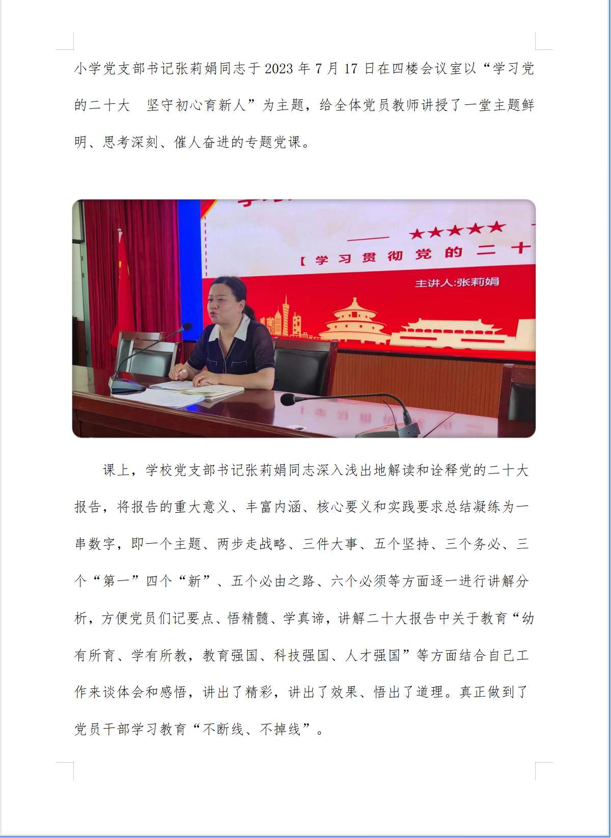 [六小.党建]“学习党的二十大坚守初心育新人”——中卫市第六小学党支部专题讲党课纪实