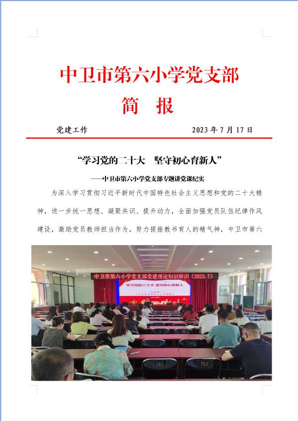 发布时间:2023-08-04 09:11 分类:政治学习 发布单位:中卫市第六小学 点击量:3084 【公开】