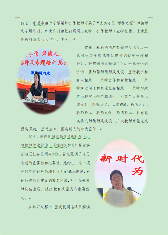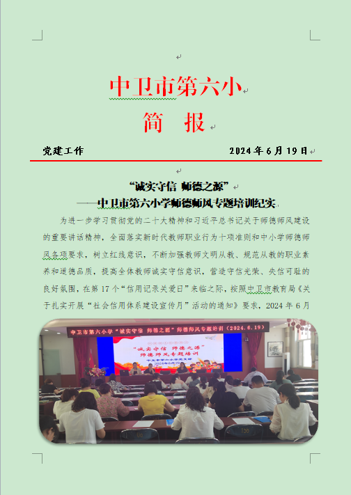 【中卫六小·党建】“诚实守信 师德之源”师德师风专题培训纪实