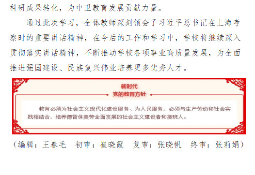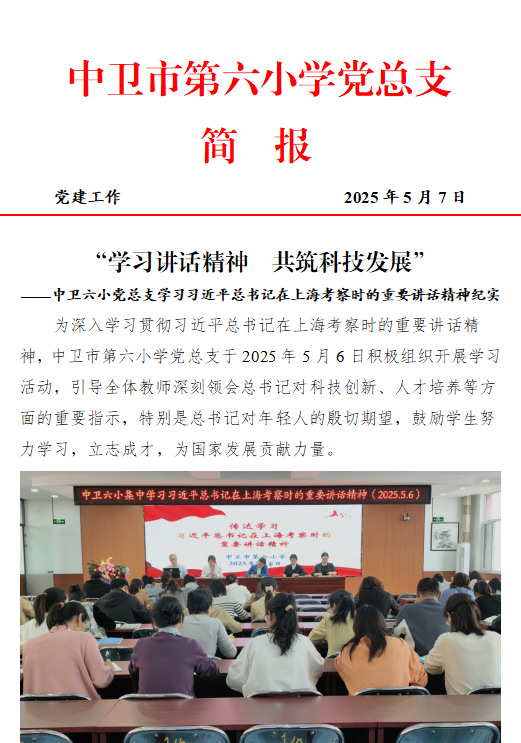 ——中卫六小党总支学习习近平总书记在上海考察时的重要讲话精神纪实