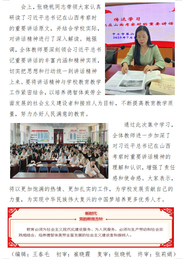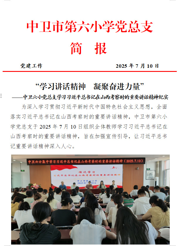 ——中卫六小党总支学习习近平总书记在山西考察时的重要讲话精神纪实