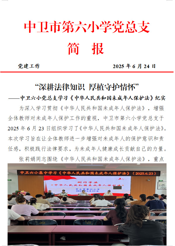 ——中卫六小党总支学习《中华人民共和国未成年人保护法》纪实