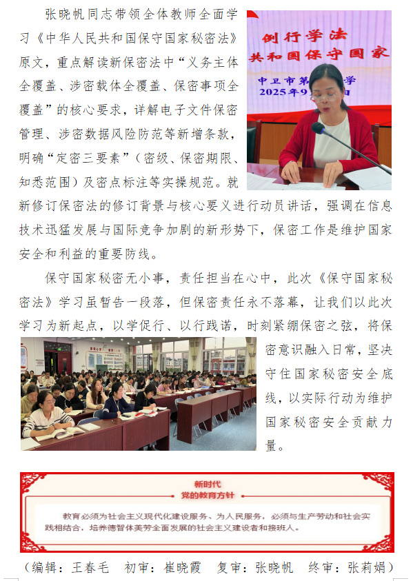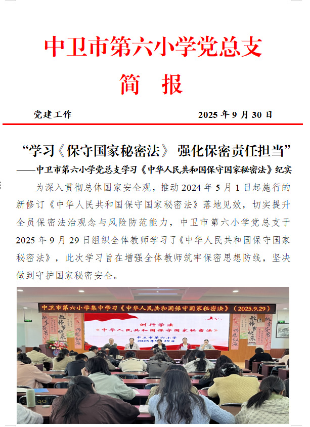 ——中卫市第六小学党总支学习《中华人民共和国保守国家秘密法》纪实