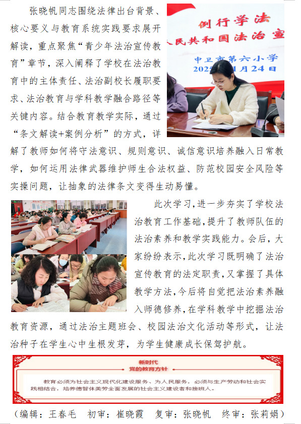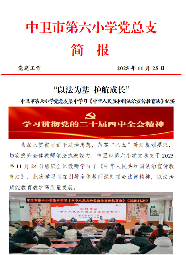 ——中卫市第六小学党总支集中学习《中华人民共和国法治宣传教育法》纪实