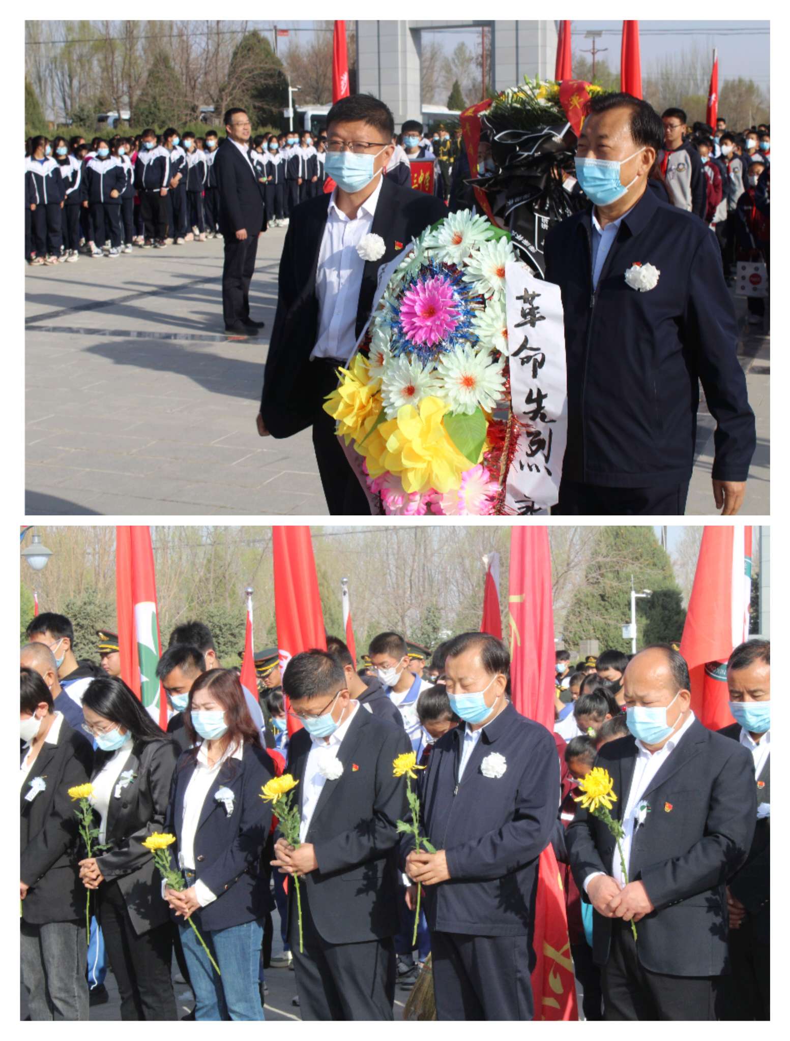 通过默哀、敬献花篮、献唱《我们是共产主义接班人》等活动,教育学生铭记历史,传承红色基因。