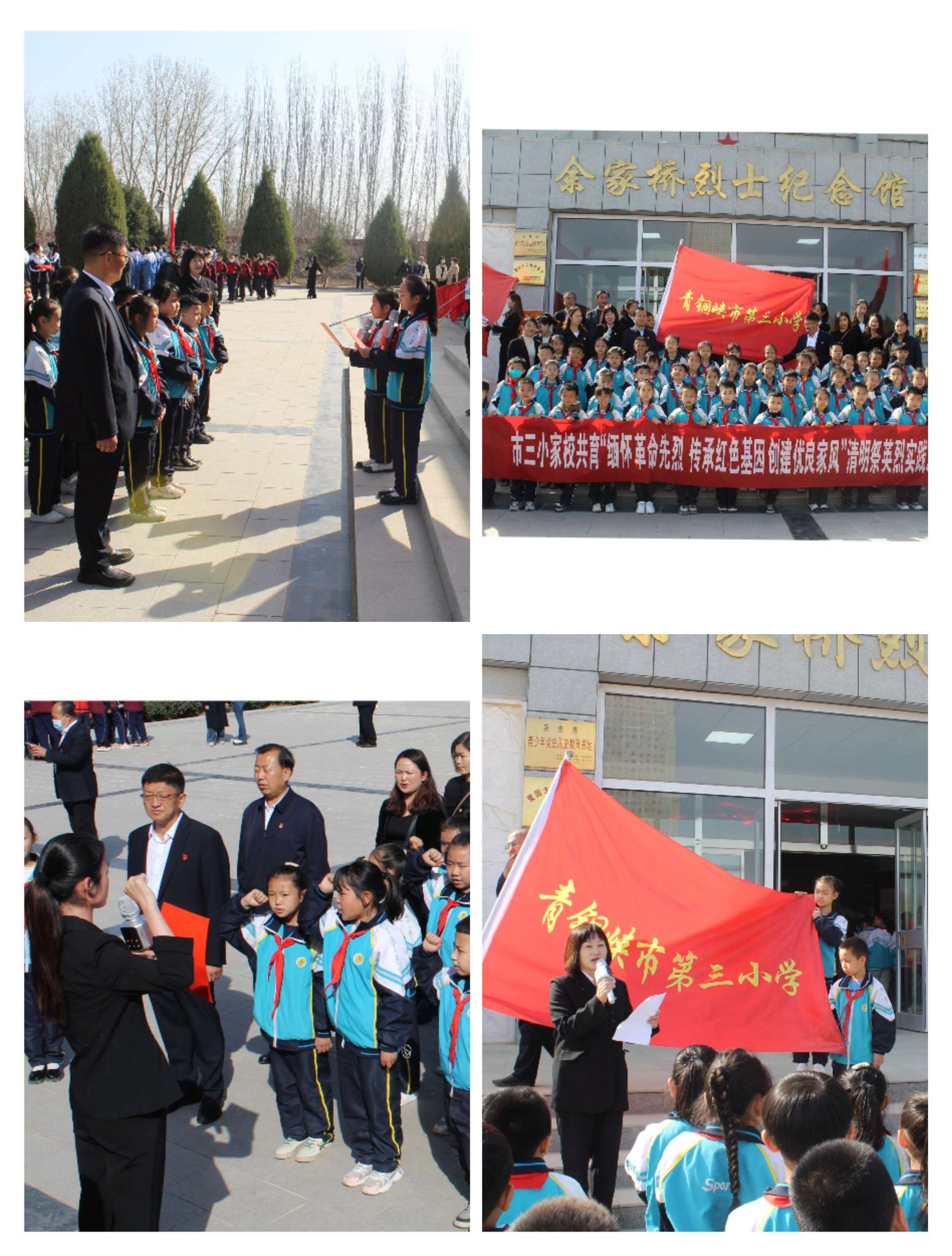 在一年一度的清明节来临之际,为了缅怀革命先烈,传承中华民族优秀传统文化,弘扬爱国主义精神,增强爱国主义教育。3月31日上午,青铜峡市第三小学六十余名师生、家长代表,在青铜峡市余家桥烈士陵园开展“缅怀革命先烈,传承红色基因,创建优良家风”清明祭英烈实践教育活动,聆听红色故事,坚定理想信念。