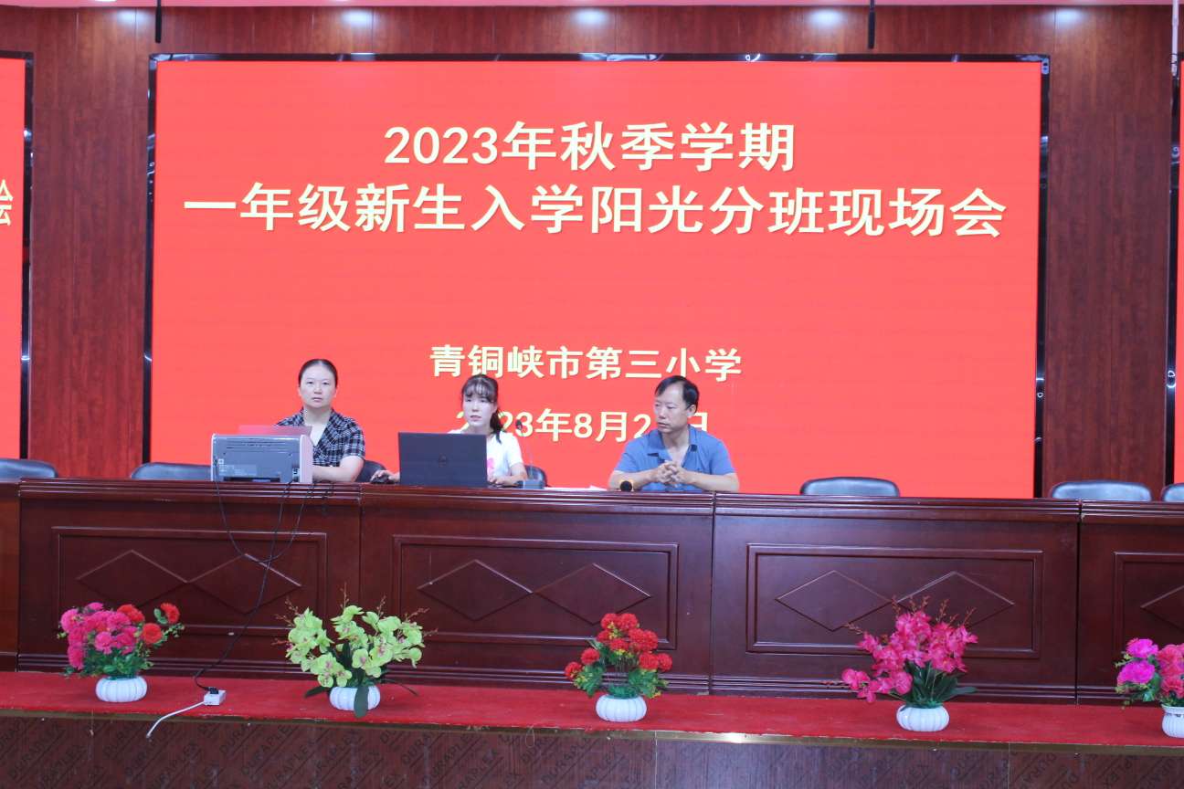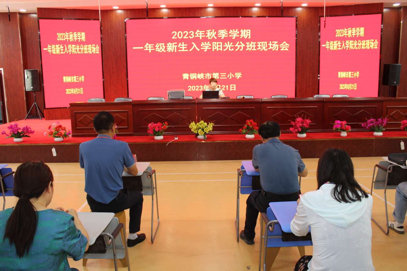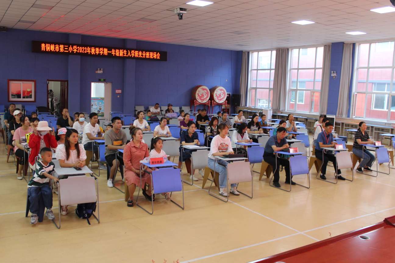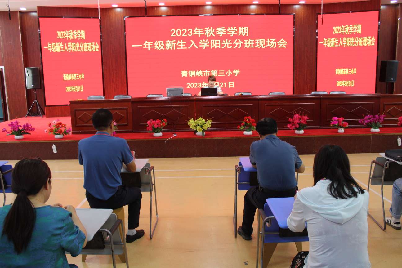为进一步规范义务教育阶段学校办学行为,不断提高人民群众对教育的满意度,切实解决择师择班问题,让群众感受到教育公平和社会正义,根据市教育局关于阳光分班通知精神,青铜峡市第三小学2023年8月21日上午八点在综合楼二楼大厅进行了“2023年秋季学期一年级新生入学阳光分班”现场会。