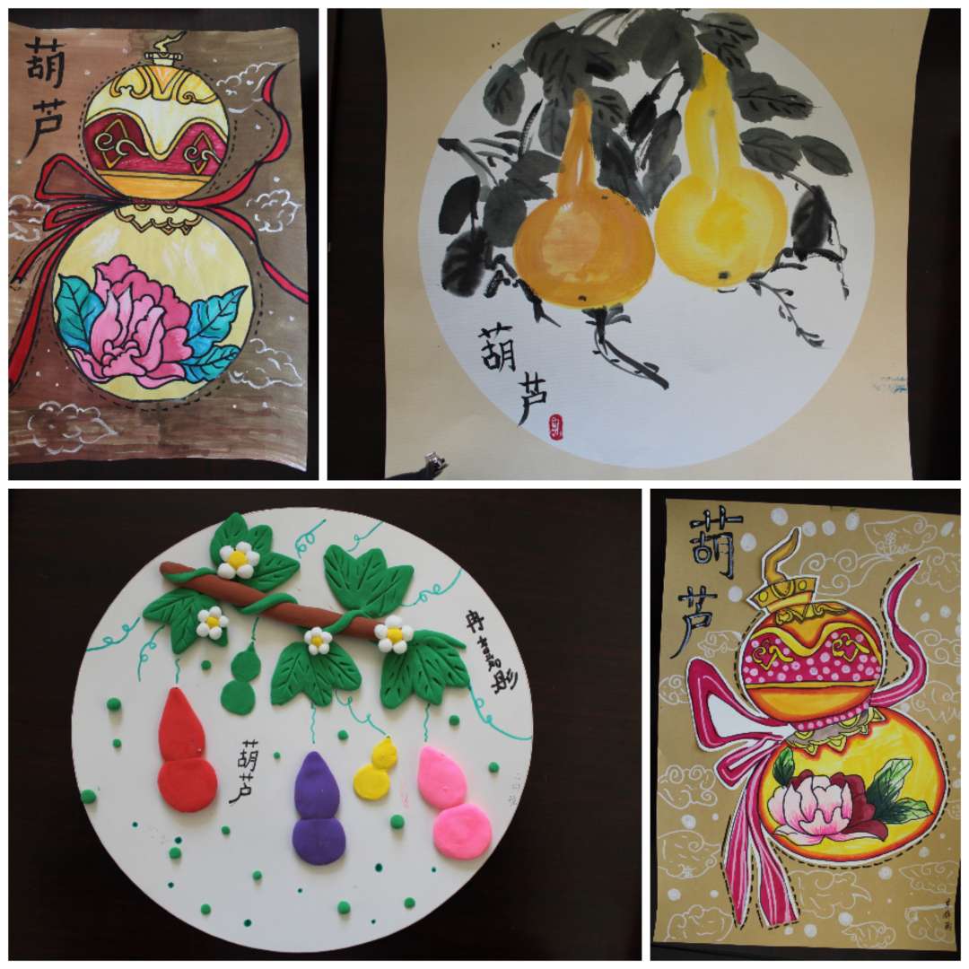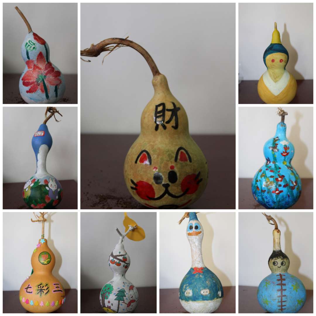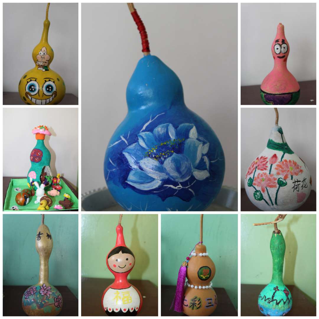 为了提高同学们的创造力以及丰富知识,我们借助研葫芦、绘葫芦等实践活动培养同学之间的各种协作和交流,进行美育教育,培养学生的合作意识与能力。现在让我们来看一看孩子们的作品吧!