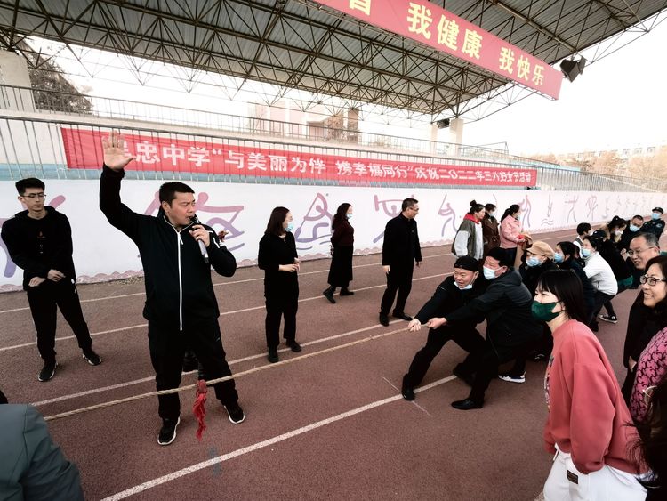 午后的斜阳里,吴忠中学的操场上欢声笑语,妇女节的庆祝活动正式开始。领导和教师们齐聚于此,用精彩无比的趣味比赛将节日的氛围推向另一个热度。