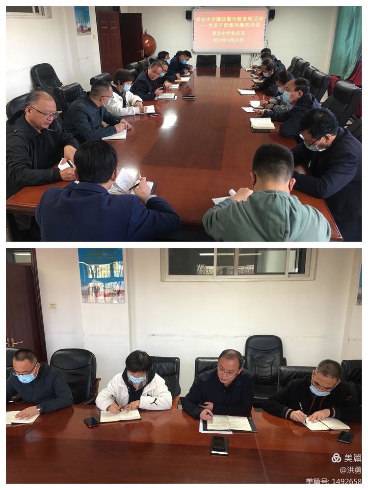 3月23日“廉政警示教育周”活动启动以来,吴忠中学结合工作实际,以“开、学、查、签、曝、观、谈、测”八项举措为抓手,重视打好廉政警示教育“组合拳”,教育引导全体党员干部、党员教师要坚守纪律底线,筑牢思想防线,不断增强拒腐防变能力,提高廉洁从政、廉洁从教、廉洁修身意识,永葆共产党员清正廉洁的政治本色。
