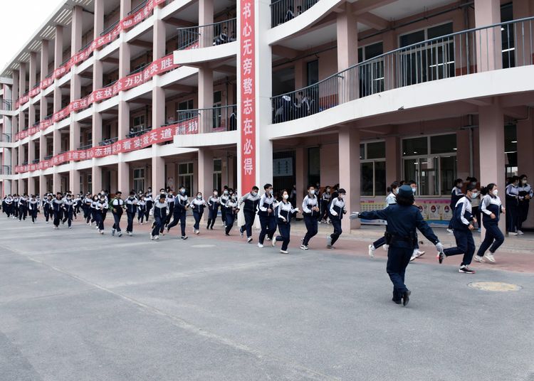 学校领导参加了整个演练过程,同学迅速跑步到达指定地点,原地抱头蹲下,保持安静;以班级为单位集队,清点人数,并向年级主管副校长报告。