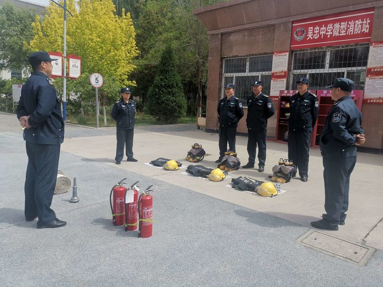 学校保卫科微型消防站也利用5.12防震减灾演练活动日展开消防灭火培训及消防演练。微型消防站站长李明给各位队员强调灭火要站在上风处,对准火焰根部进行扫射,如何展开、回收消火栓消防水带等,进一步提升微型消防站的灭火技能。