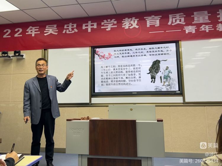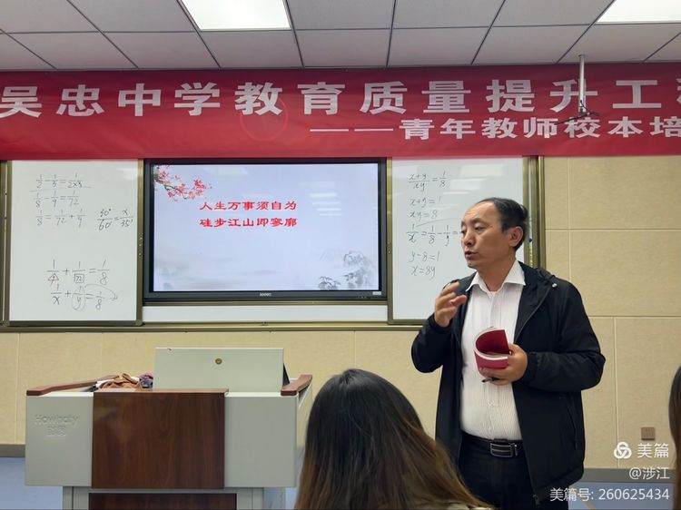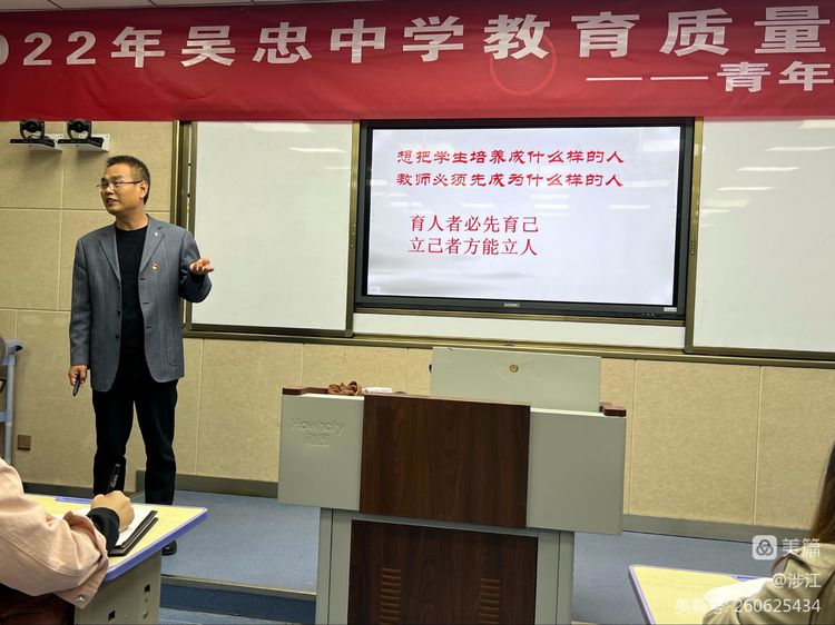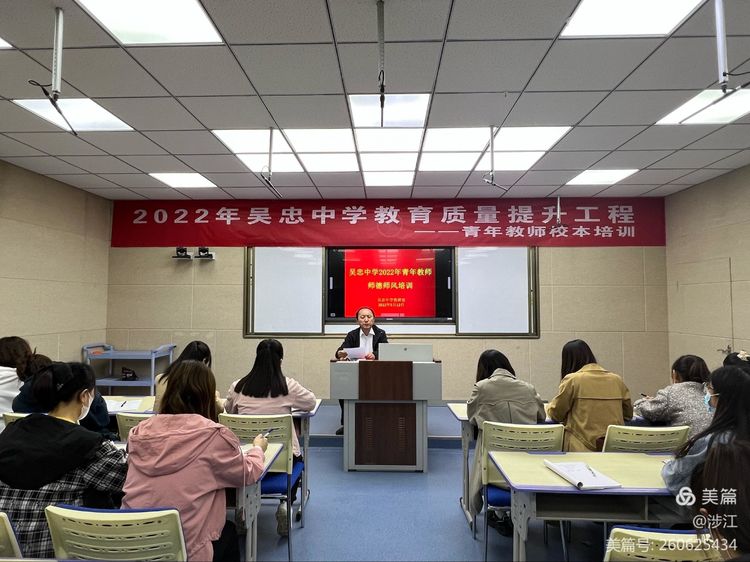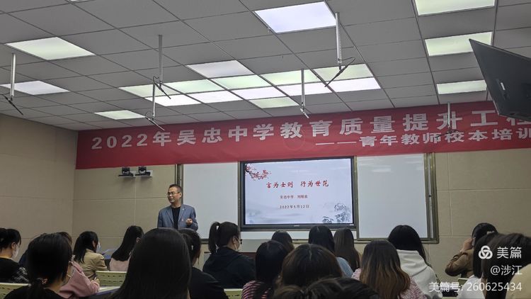 厉兵秣马强技能,蓄势待发迎成长。为了加强青年教师队伍建设,进一步培养青年教师爱岗敬业的精神,提高青年教师教育教学技能,5月12日下午,吴忠中学在学校录课室举办了首场青年教师校本培训名师讲座。教龄10年以下青年教师共计93人参加本次培训活动。培训由学校教研室主任马利军同志主持,自治区首届塞上名师、特级教师刘银良副校长主讲。
