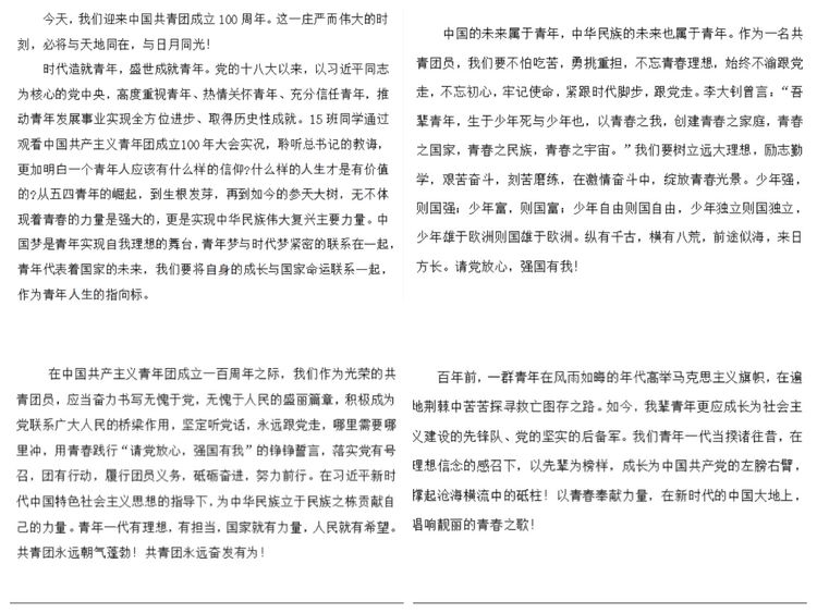 在庆祝中国共产主义青年团成立100周年大会上,习近平总书记指出“实现中国梦是一场历史接力赛,当代青年要在实现民族复兴的赛道上奋勇争先。”强调:“党和国家的希望寄托在青年身上!”