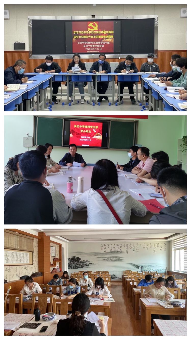 在吴忠中学党总支的号召下,5月10日~19日,学校党总支、各党支部党小组、各学科组、各年级广大师生分不同层次开展学习习近平总书记在庆祝中国共产主义青年团成立100周年大会上的重要讲话精神,迅速在校园内掀起学习热潮。