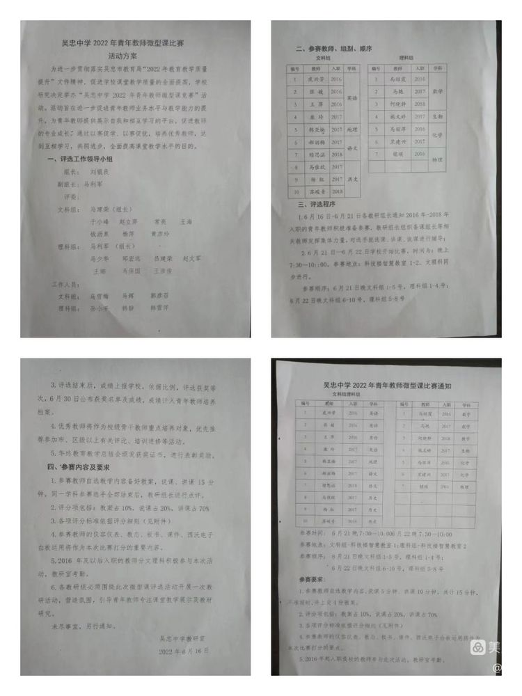 参加本次微课比赛的青年教师有数学组马绍霞、马艳、何晓静老师,生物组施文婷老师,化学组黑建兴、马丽萍老师,物理组锁瑛老师。