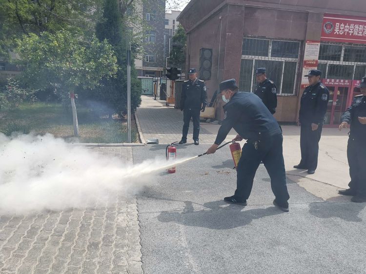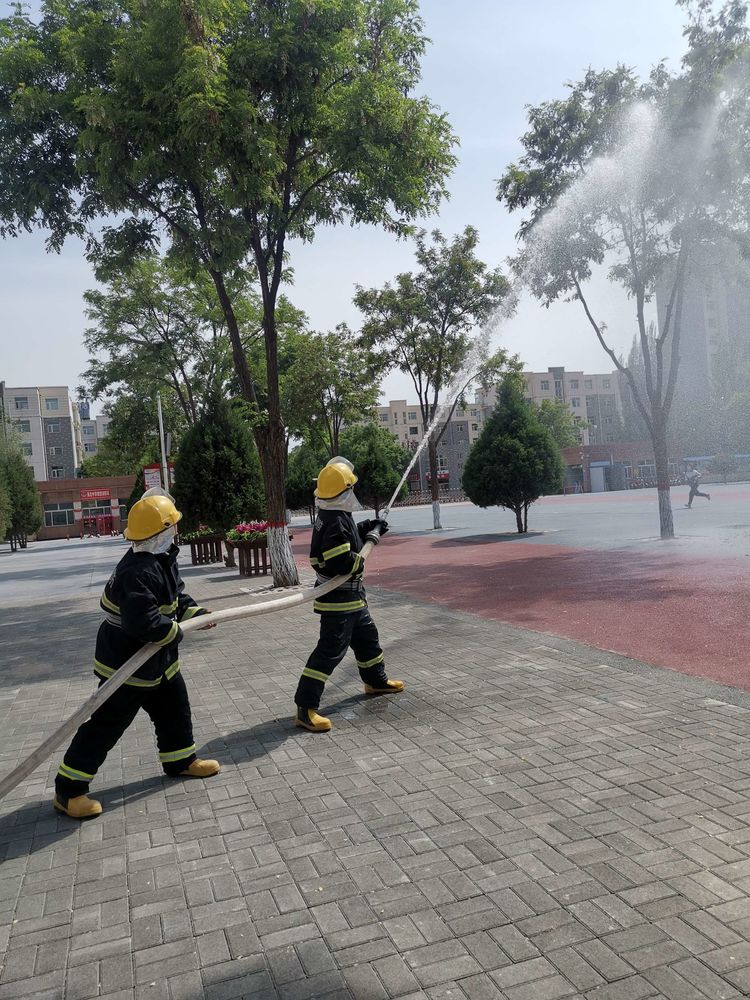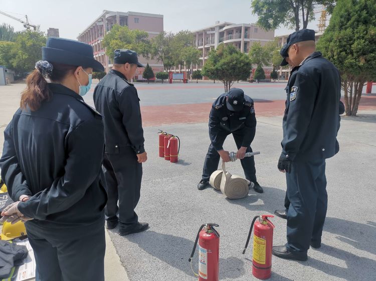 学校保卫科微型消防站也利用5.12防震减灾演练活动日展开消防灭火培训及消防演练。微型消防站站长李明给各位队员强调灭火要站在上风处,对准火焰根部进行扫射,如何展开、回收消火栓消防水带等,进一步提升微型消防站的灭火技能。