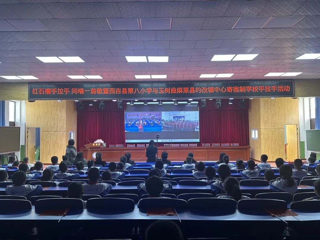 为深入学习宣传贯彻落实党的二十大和中央民族工作会议精神,贯彻落实自治区第十三次党代会精神和市委决策部署,进一步加强各族青少年交往交流交融,教育引导各族青少年继承和发扬民族团结优良传统,不断增强“五个认同”,进一步铸牢中华民族共同体意识。近日,西吉县第八小学三(3)中队、四(5)中队、五(1)中队分别和青海省玉树藏族自治州曲麻莱县约改镇中心寄宿制学校三(1)中队、四(3)中队、五(2)中队的队员们开展了“红石榴 手拉手”结对交流活动。 小小石榴籽 书信寄真情 前期,两地的少先队员们在书信中介绍自己、学校和家乡以及家乡美食,介绍自己的兴趣爱好,提出希望和心愿。通过信件结识远方的小伙伴,用真挚的、简朴的话语结交一位朋友,用关心架起友谊的桥梁,和小伙伴们一起勤奋学习,快乐生活,共同成长。 一行行工整的字迹,一句句真挚的话语,使两地少先队员们心里充满了喜悦与感动。他们通过文字向远方的朋友诉说着,更是自豪地告诉远方朋友家乡发生的巨大变化,有的还热情地发出邀请,希望远方的朋友能到自己的家乡做客。无限的期待也从那一刻开始……见字如晤、纸短情长,建立情谊、互诉衷肠。 一封封暖暖的信件,承载了两地队员们暖暖的情意,两地队员从一封信件这个小窗口中看到了一个远方的世界,更是让两地的队员们体会到:同一片蓝天下,同一片沃土上,同是大地上盛开的鲜花,同是蓝天里搏击长空的飞鹰,要互相激励,共同进步,携手奋进,共创祖国的美好明天。 籽籽同心 石榴花开 11月9日下午,西吉县第八小学与青海省玉树藏族自治州曲麻莱县约改镇中心寄宿制学校“红石榴· 手拉手”结对交流活动正式拉开帷幕,两地的孩子们相约云端,通过诗朗诵、舞蹈、“同上一堂课”、“同唱一首歌”等形式,呈现了一场精彩纷呈的表演,云端把两地师生彼此的心连在了一起,拉进了彼此之间的距离。 活动中,我们深切的感受到双方少先队员们用自己的方式表达了心中的喜悦,共同传递着浓浓的祝福与期望,尽管今天的活动很短暂,但我们的友谊一定会天长地久,尽管我们在不同的学校,但我们定会心手相牵,准确把握“红石榴”品牌内涵,像石榴籽一样紧紧团结在一起,成为学习与成长的共同体,成为心手相连的兄弟姐妹,互相传递祝福、传递关心,共同进步,砥砺同行。 最后,活动在一首《我和我的祖国》中圆满落幕。 活动要求:希望同学们能以此次活动为契机,加强交流,增进友谊、修养品德。要坚定不移的听党话、跟党走,牢记习近平总书记的嘱托,要像石榴籽一样紧紧抱在一起,做民族团结进步的维护者、宣传者、践行者,让青春在谱写民族团结进步事业新篇章当中绽放绚丽之花,做有理想、敢担当、能吃苦、肯奋斗、德才兼备、品学兼优的新时代中国好少年,为实现中华民族的伟大复兴不懈奋斗。