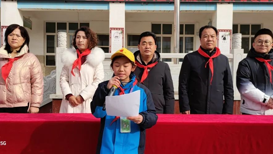 少先队大队辅导员马悦文老师宣布:西吉县第八小学2024年“学雷锋月”活动正式启动。