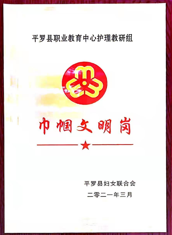 平罗县巾帼文明岗荣誉称号(护理教研组)