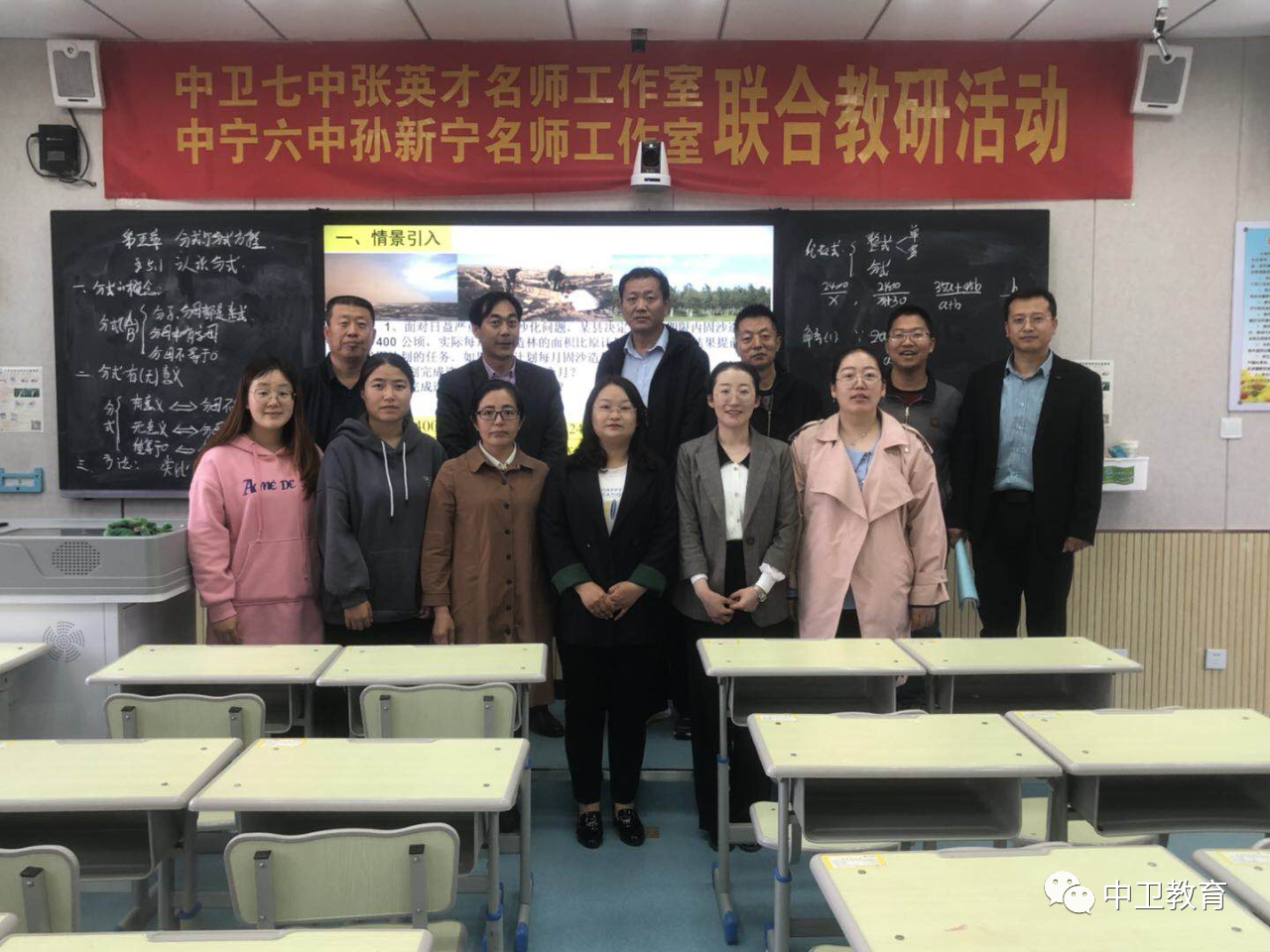 为进一步加强我市名师工作室建设,推进市名师工作室扎根课堂及名优教师集群培养,助力中卫市教育高质量发展,2021年4月23日,中卫市第七中学“张英才名师工作室”与中宁县第六中学“孙新宁名师工作室”在中宁县第六中学开展联合教研活动。本次活动得到了市、县教研室和中宁县第六中学领导的高度重视和大力支持,中宁县教研室组织了全县各初级中学和九年制学校七、八年级的部分数学教师参加了本次联合研讨活动。