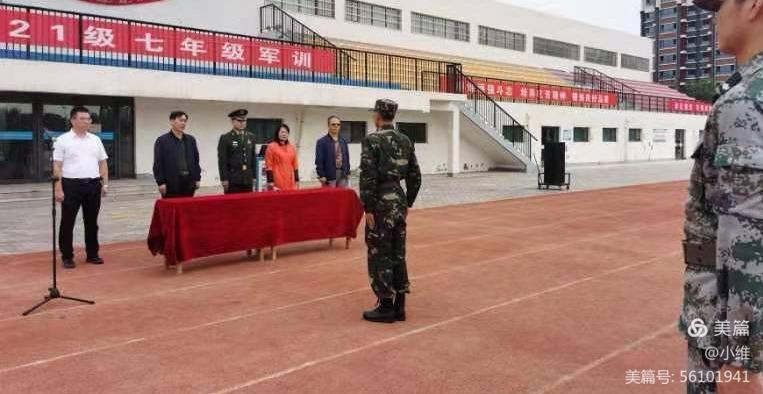 绿茵场上,嘹亮的号角响彻高空。开学第一天,中宁六中七年级新生们迎来了初中生涯的第一站——军训。