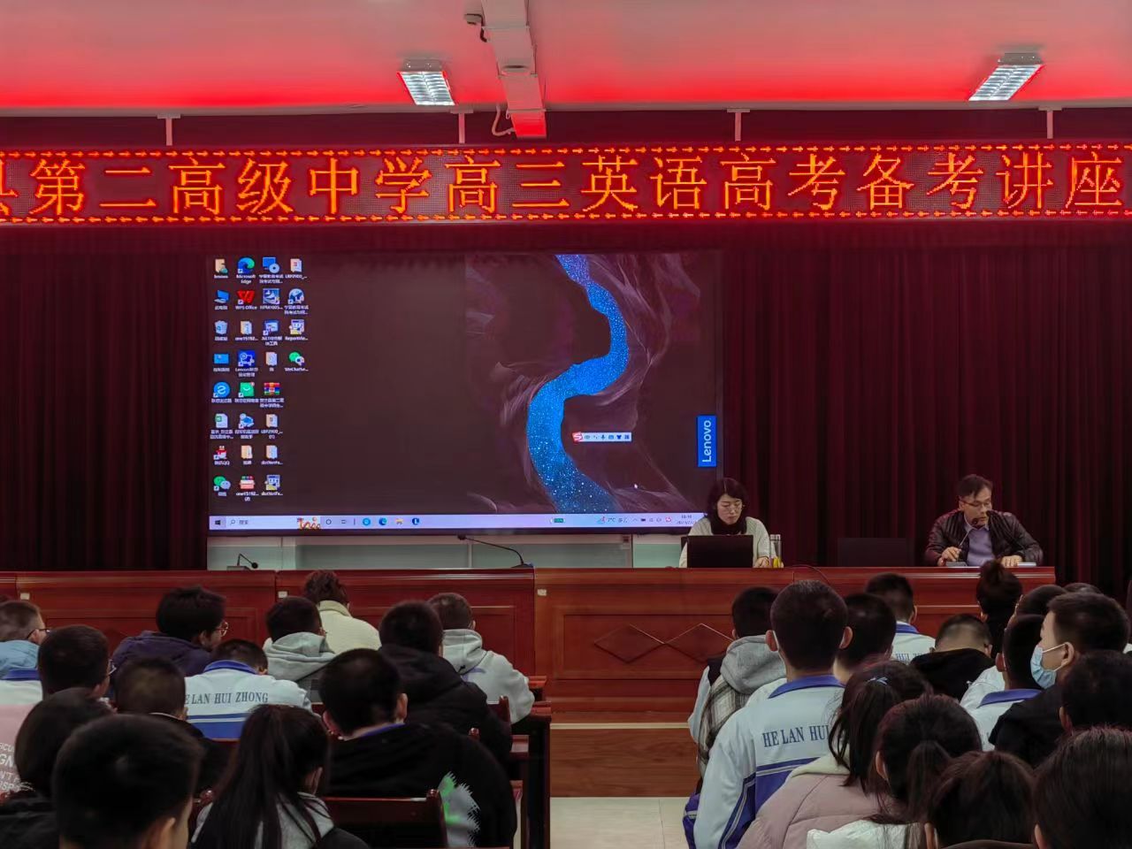 为推动我校高中英语教学高质量的发展,提升高三英语学科复习备考的实效性和针对性,实现科学备考,2023年2月21日下午,我校邀请英语学科专家吕晓雅开展主题为“基于思维品质培养的2023年高三复习教学指导”的讲座,我校高三部分学生、我校全体英语教师以及贺兰一中高三英语教师参加了本次讲座。