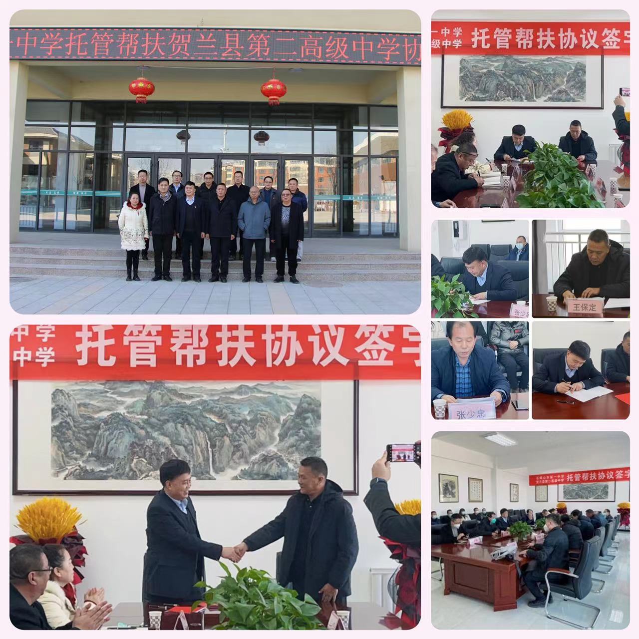 结合自治区教育厅关于各学校结对帮扶活动计划要求,为推进教育均衡发展,和兄弟学校互相学习、相互促进、共同提高,促进学校间均衡、和谐发展,本着共享资源,增强校际间交流与合作。2月7日,石嘴山市第一中学与我校的托管帮扶工作正式拉开帷幕,贺兰县教育体育局副局长张少忠、石嘴山市第一中学校长王保定一行莅临我校开展托管帮扶工作,我校校长石学军及全体行政领导参加了本次活动。