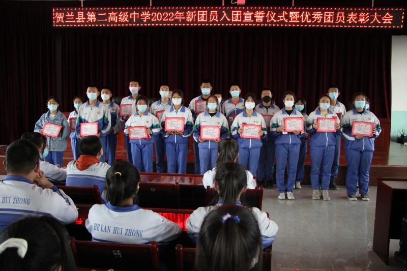 贺兰县第二高级中学2022年新团员入团宣誓仪式暨优秀团员表彰大会图片资料