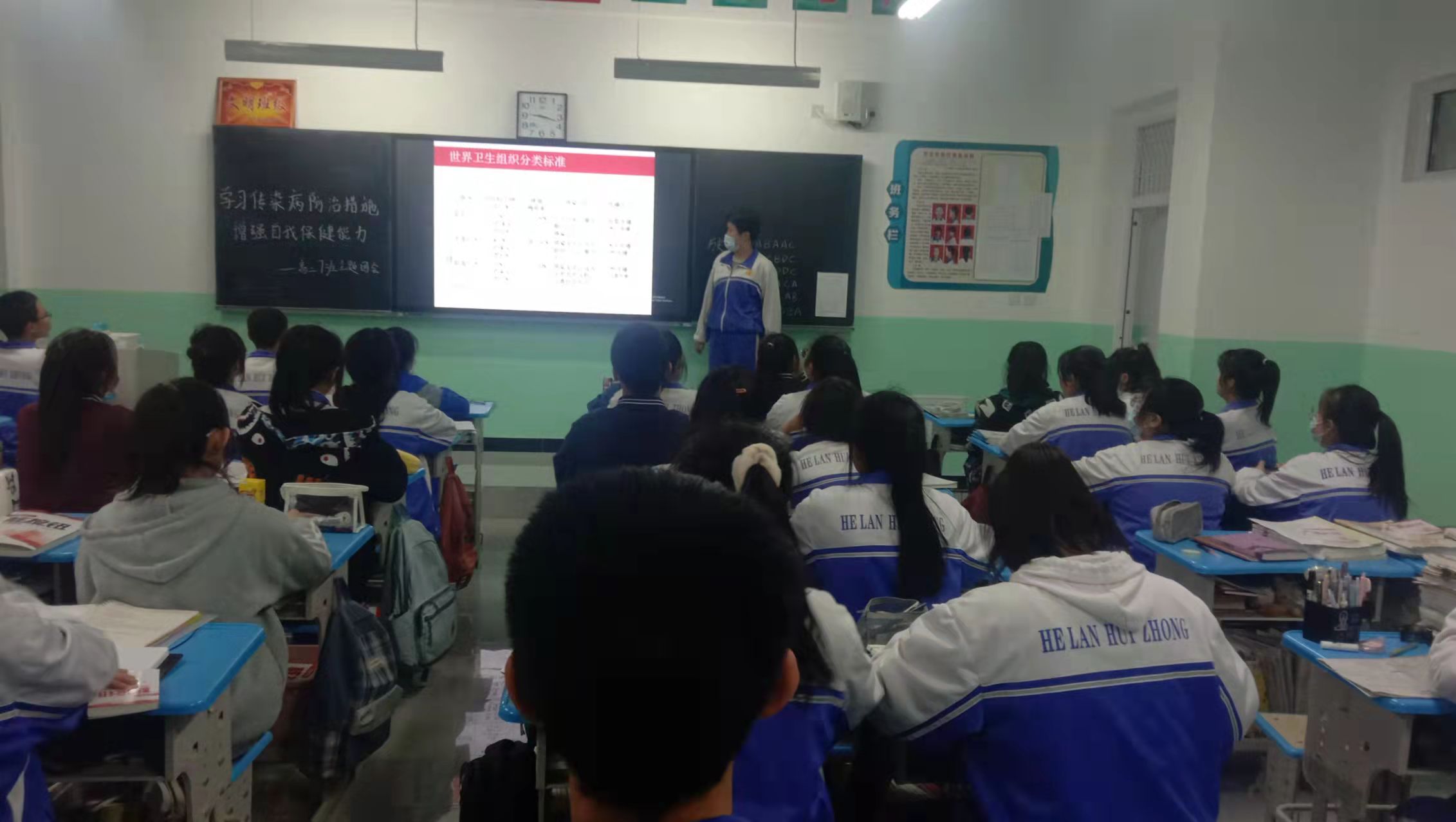 贺兰县第二高级中学《学习传染病防治措施 增强自我保健能力》主题团会图片资料