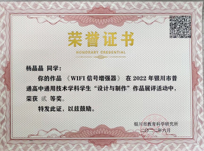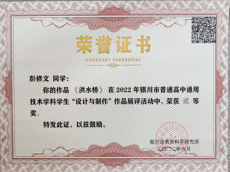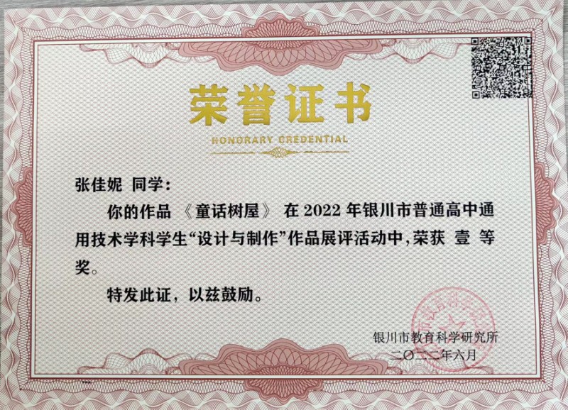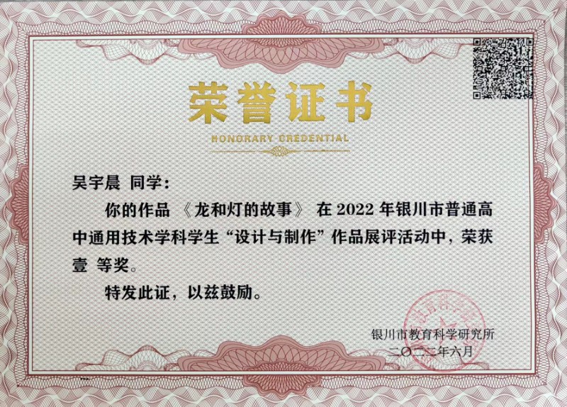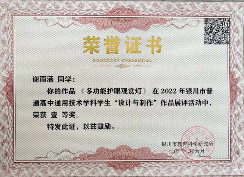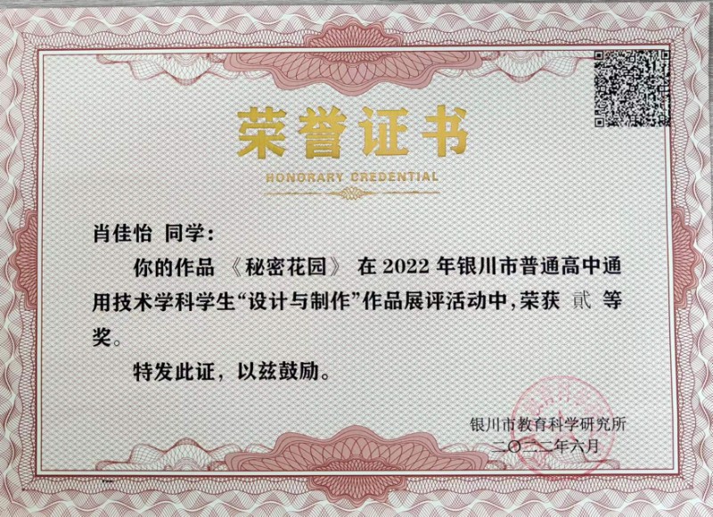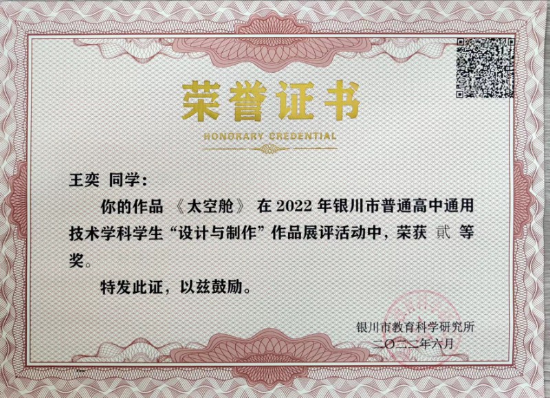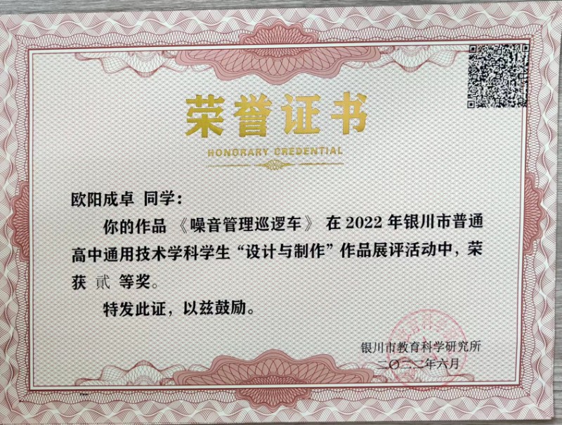 2022年银川市普通高中通用技术学科学生荣誉证书
