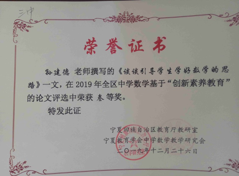【创新素养获奖】2019全区中学数学基于“创新素养教育”获奖通报