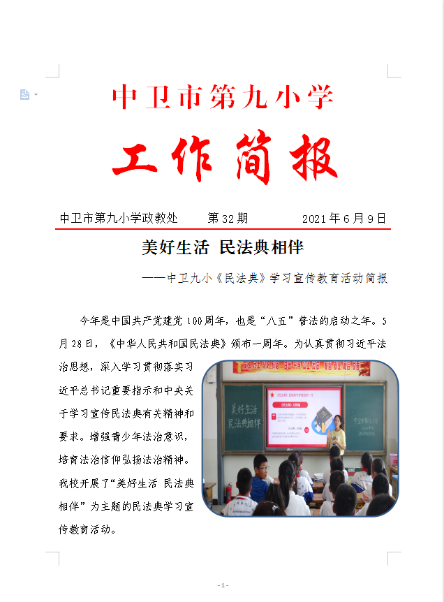 中卫九小《民法典》学习宣传教育活动简报