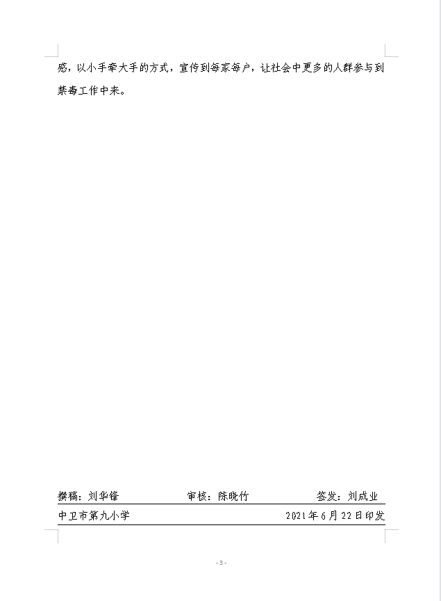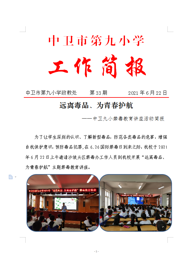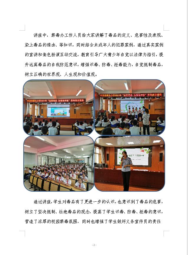 中卫市第九小学2021年“远离毒品、为青春护航”禁毒教育讲座简报