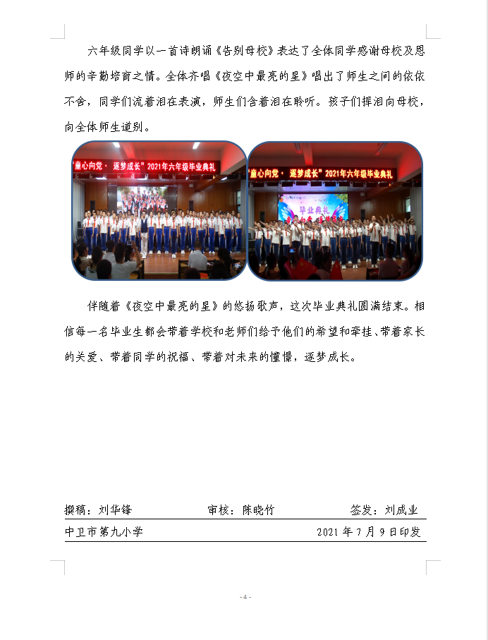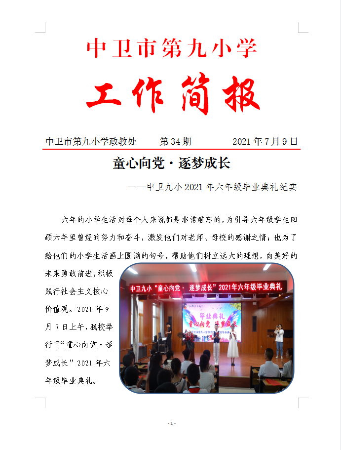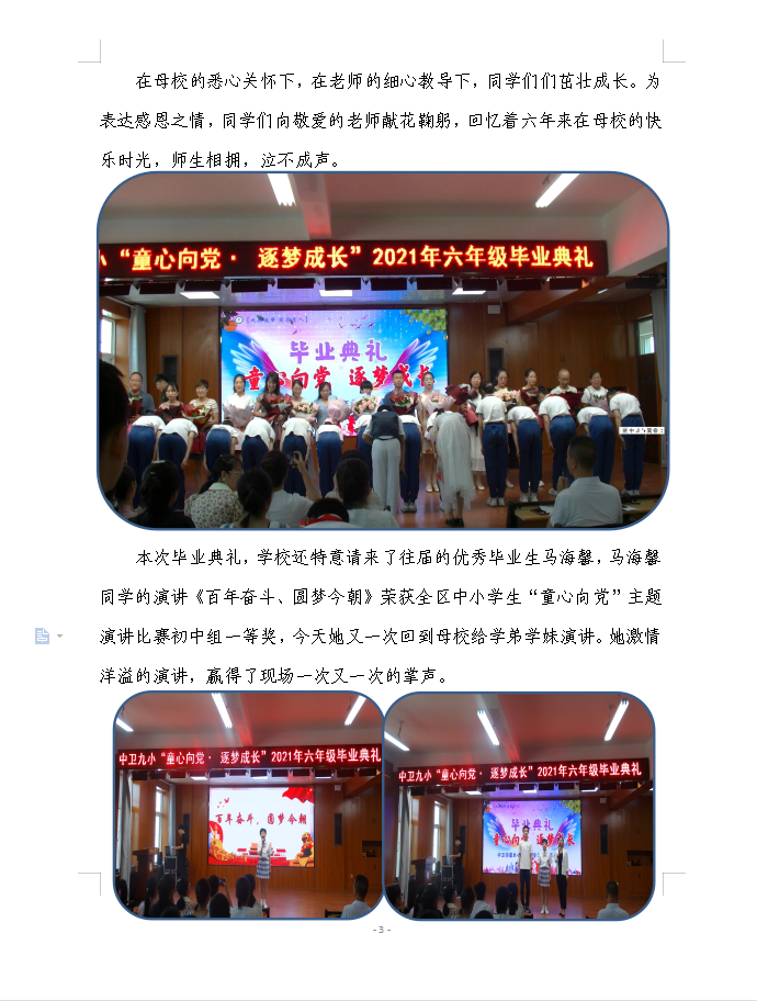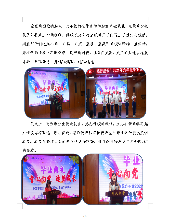 中卫九小"童心向党·逐梦成长"2021年六年级毕业典礼纪实