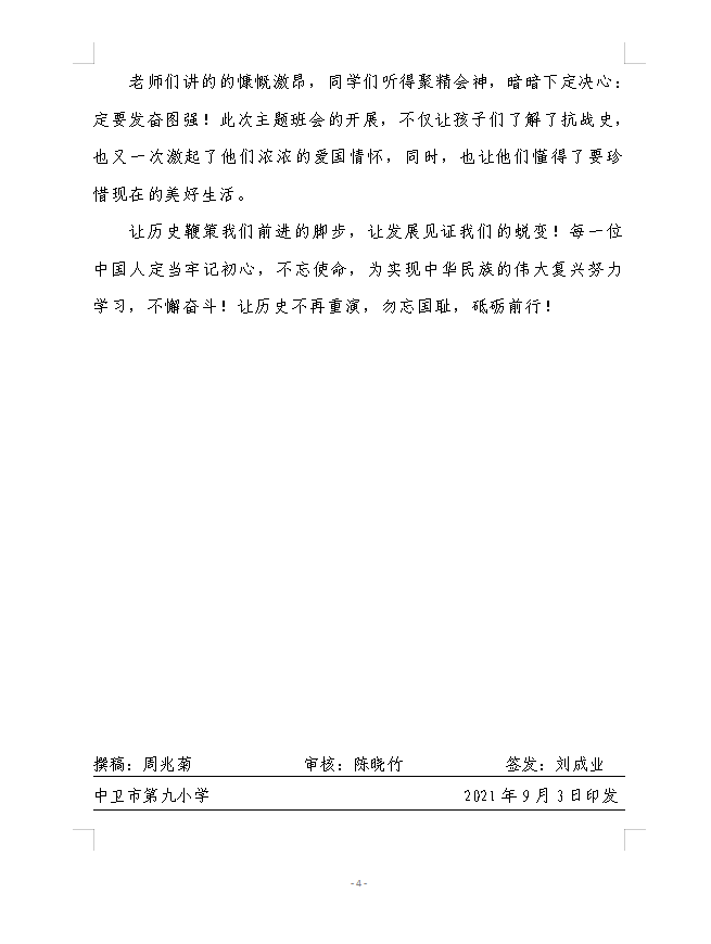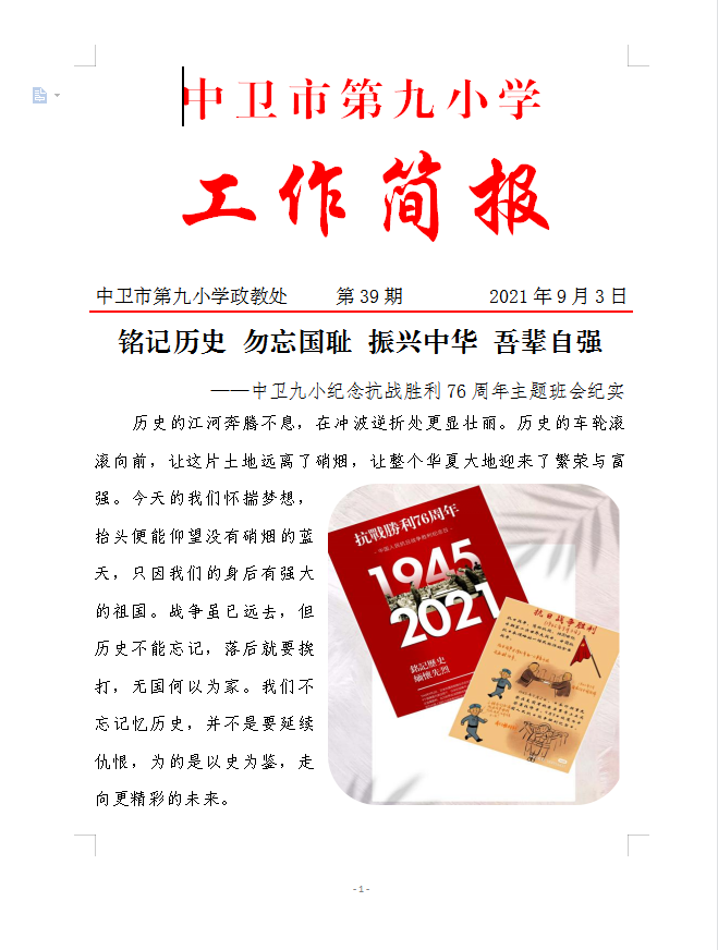 中卫九小纪念抗战胜利76周年主题班会纪实