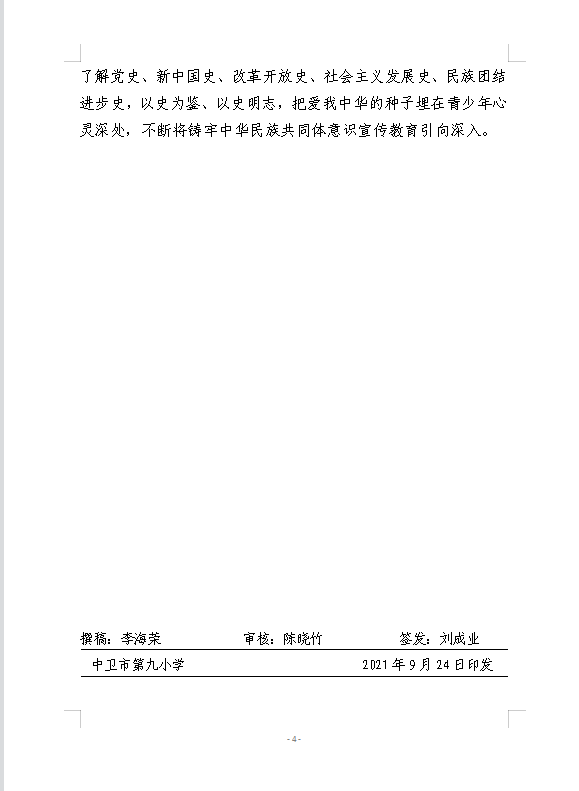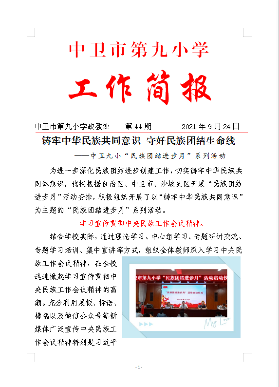 发布时间:2021-09-26 09:33 栏目:政教工作 发布单位:中卫市第九小学 点击量:4974 【公开】