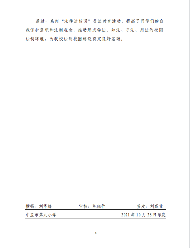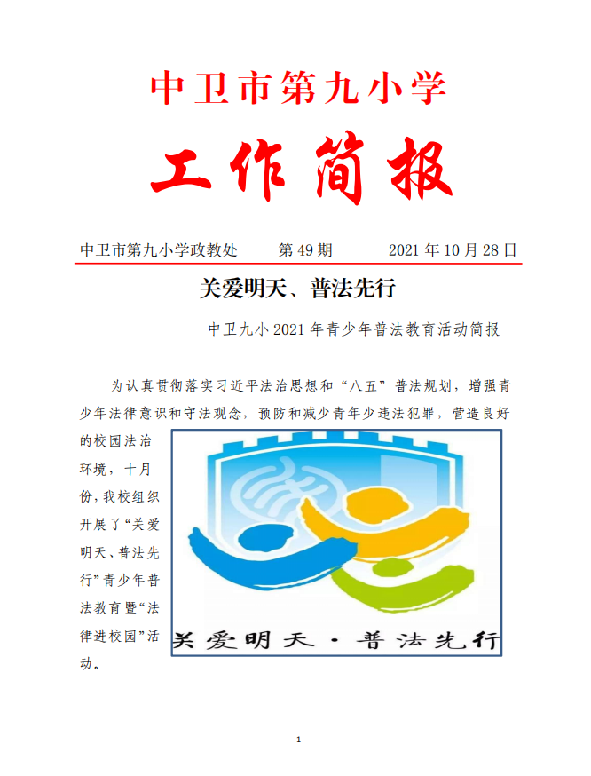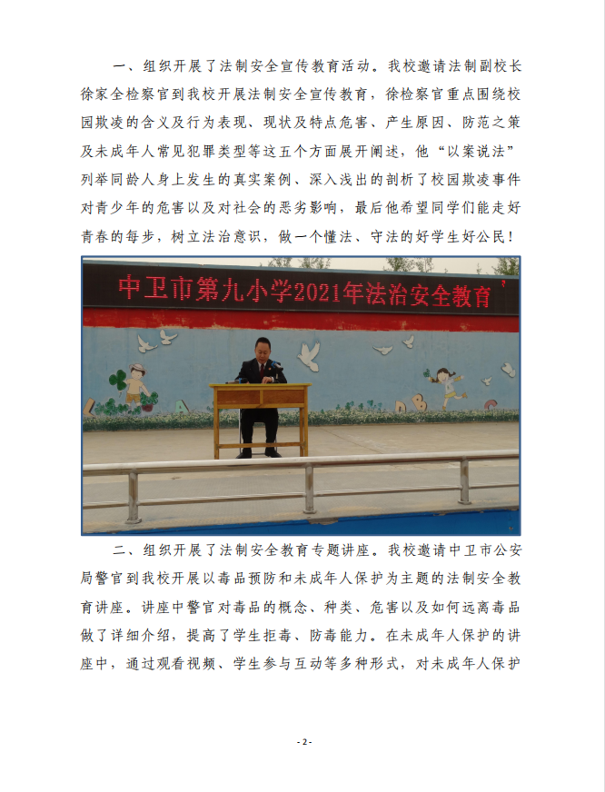中卫九小2021年青少年普法教育活动简报