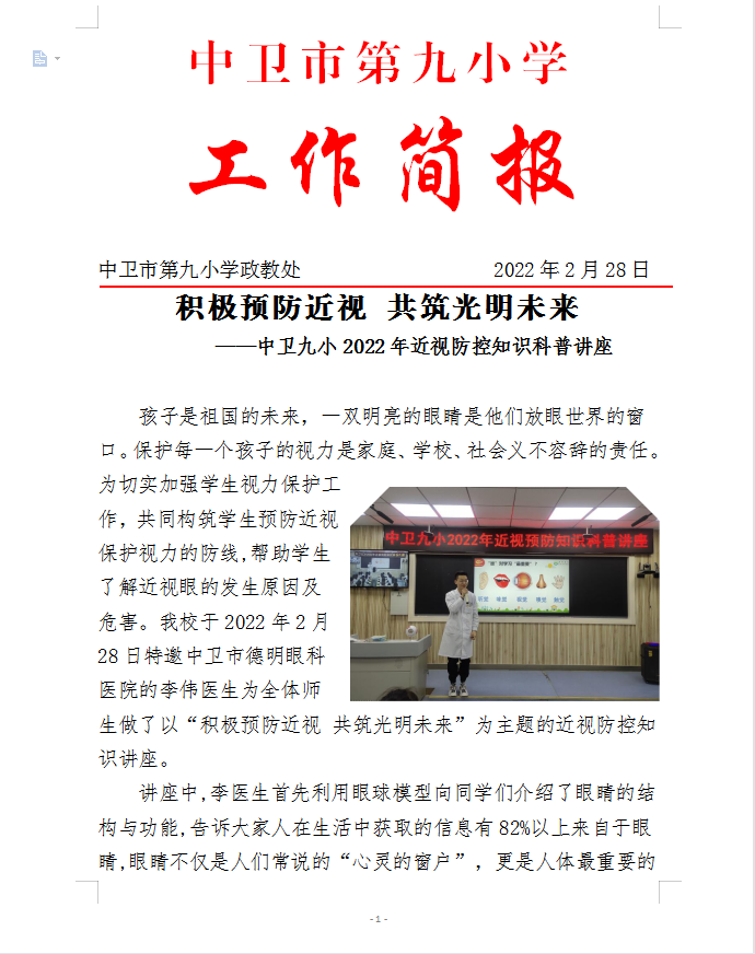 发布时间:2022-03-01 16:45 栏目:政教工作 发布单位:中卫市第九小学 点击量:1662 【公开】