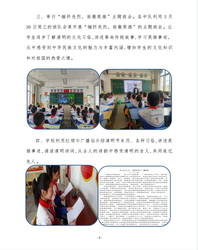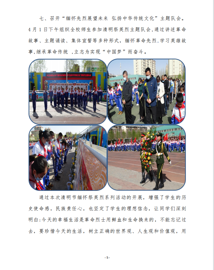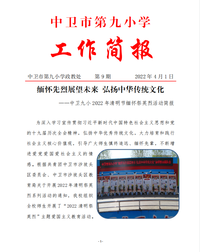 中卫九小2022年清明节缅怀祭英烈活动简报