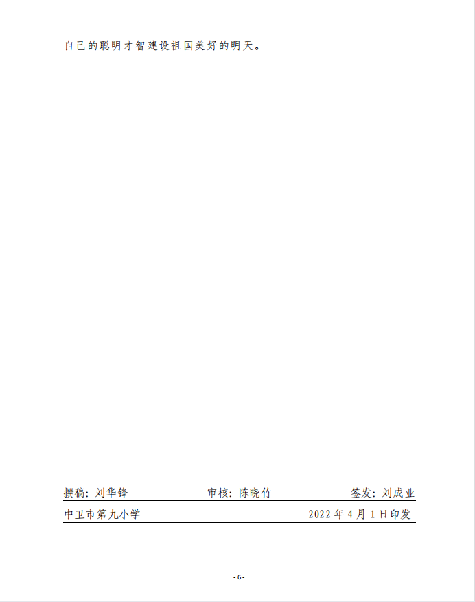 发布时间:2022-04-01 00:00 栏目:政教工作 发布单位:中卫市第九小学 点击量:1510 【公开】
