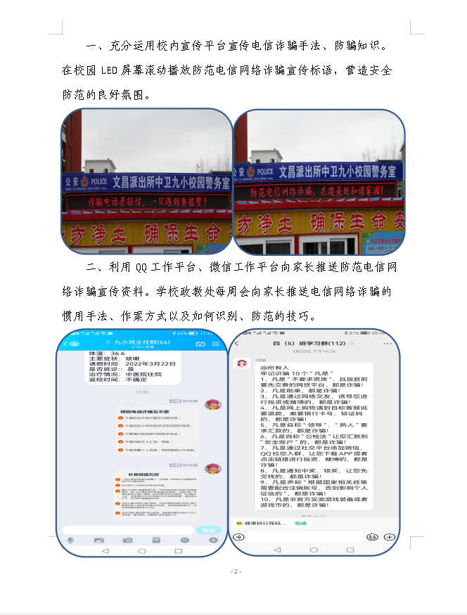 中卫九小防范电信网络诈骗宣传教育活动简报