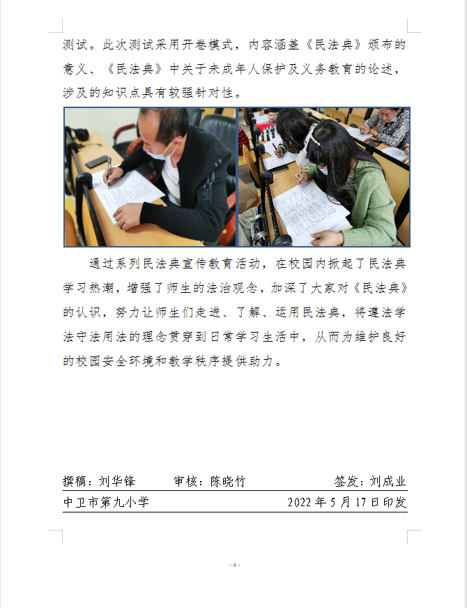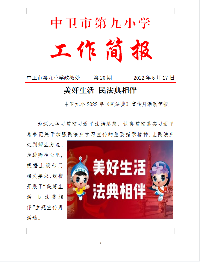 中卫九小2022年"美好生活、民法典相伴"主题宣传月活动简报