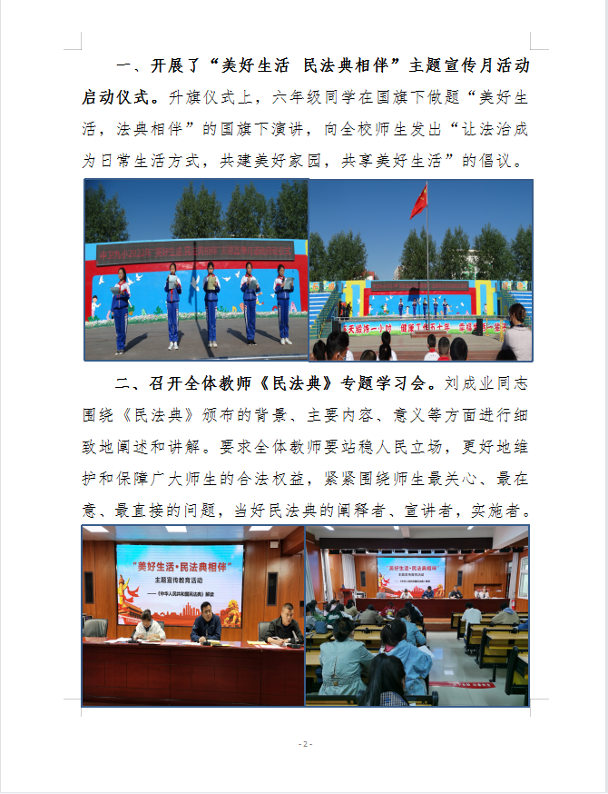 中卫九小2022年"美好生活、民法典相伴"主题宣传月活动简报