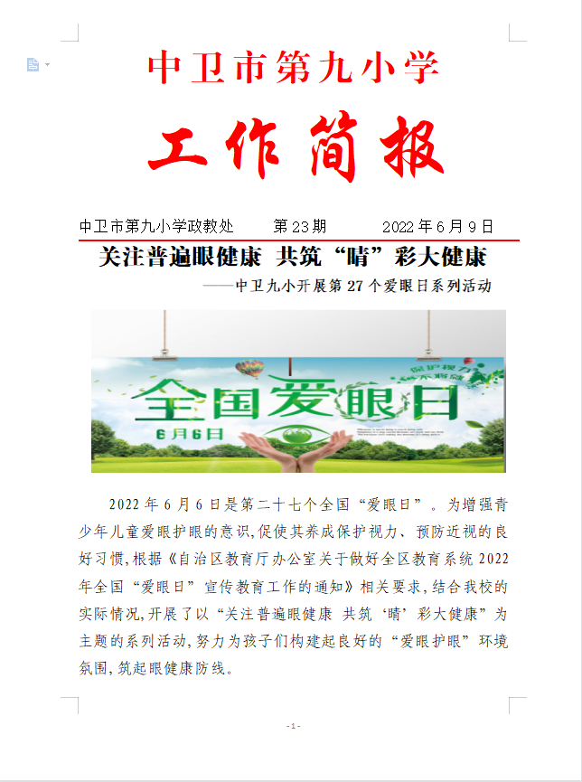 发布时间:2022-06-09 18:09 栏目:政教工作 发布单位:中卫九小 点击量:1561 【公开】