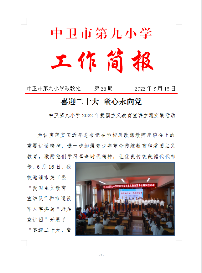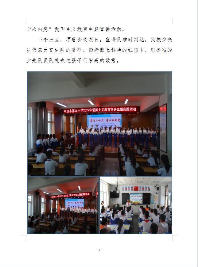 中卫第九小学2022年爱国主义教育宣讲主题实践活动